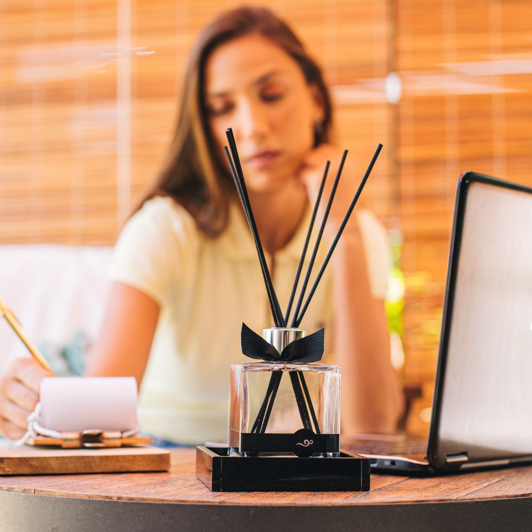 - Aumento da concentração e produtividade: Aromas revigorantes como alecrim, hortelã-pimenta e laranja estimulam a criatividade e o foco.