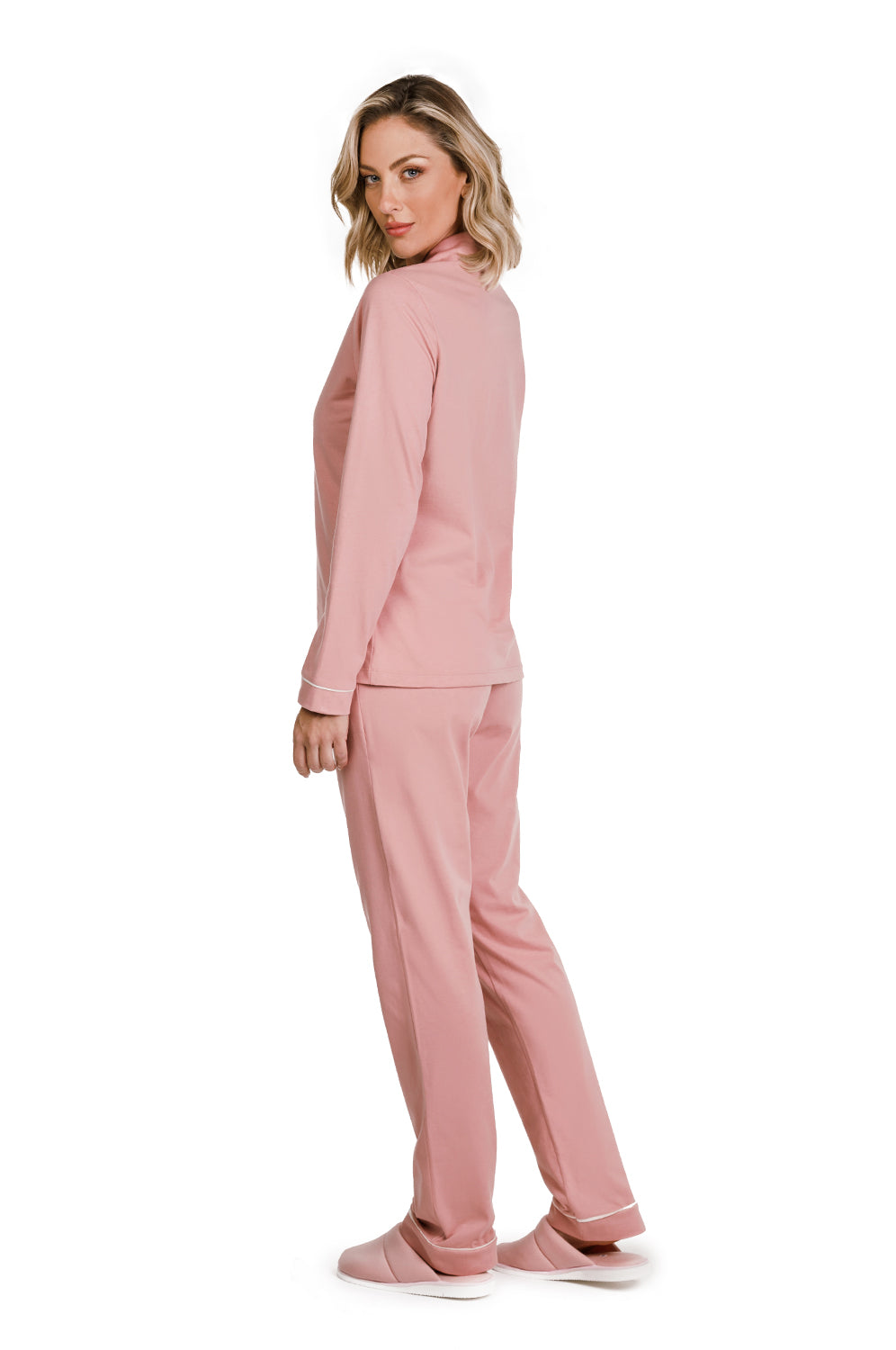 Importante: Use pouco amaciante. O excesso de resíduos químicos degrada as fibras de elastano, fazendo o pijama perder a forma.