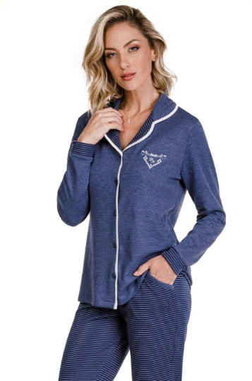 Aquele modelagem clássica de Inverno e que nos encanta a primeira vista graciosos como acabamento em vivo de cetim charmousse, gola e punhos pijama. Na calça temos bolso para aquecer nossas mãozinhas e o toque as macio, quetinho e com cartela de cor que nos faz ficar em dúvida na hora presentear, pijama é um luxo!