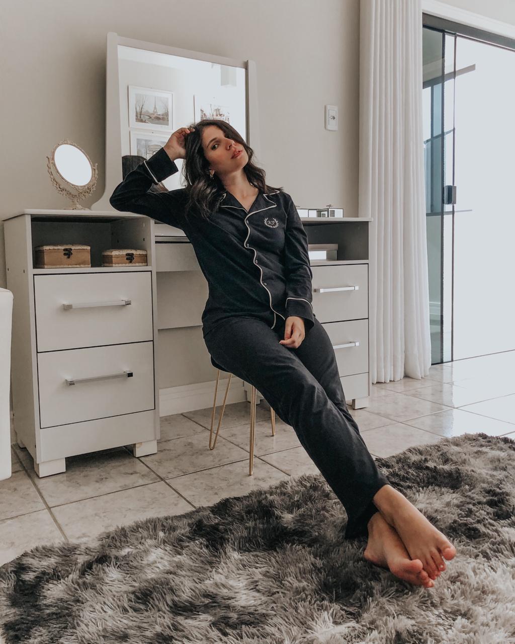 Viva momentos inesquecíveis vestido com elegância! Compre já seu novo Pijama Alfaiataria Manga Longa Preto - Mar de Sonhos!