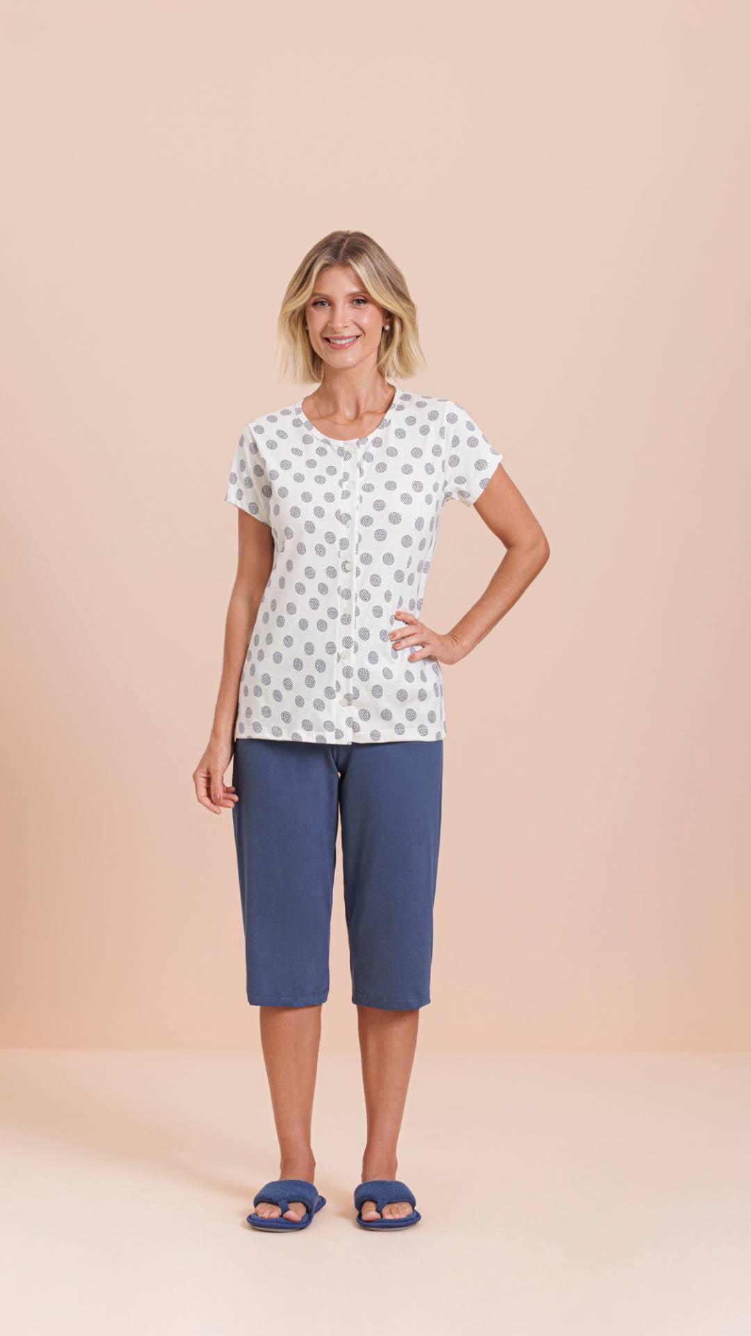 Experimente o máximo conforto com o Pescador Manga Curta Aberto Tranquilidade - Lua Encantada! Confeccionado em 100% algodão, este conjunto é ideal para quem valoriza leveza e suavidade ao vestir. Sua modelagem pescador, com blusa de manga curta e calça de comprimento médio, é perfeita para os dias de primavera e verão, proporcionando frescor e liberdade de movimento.