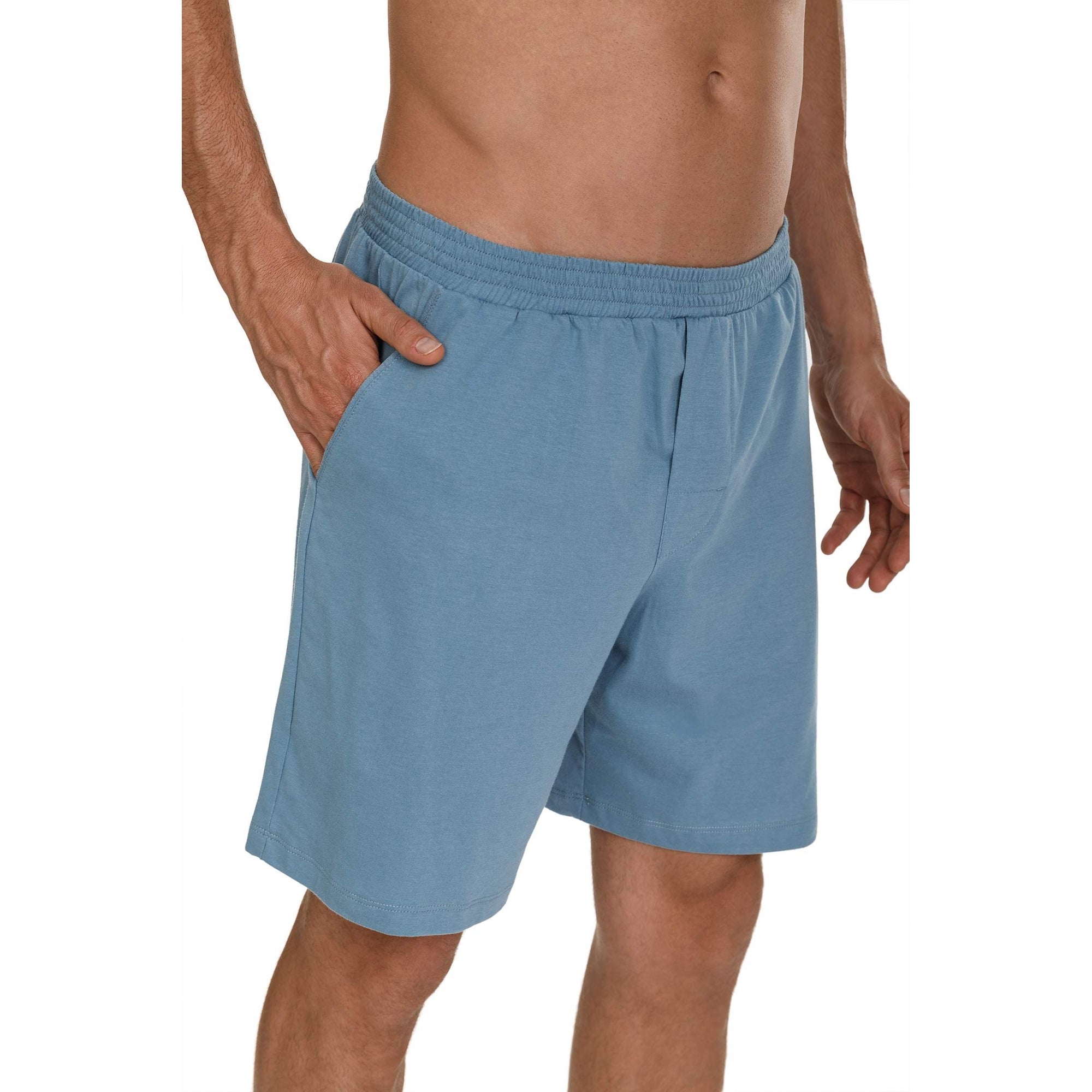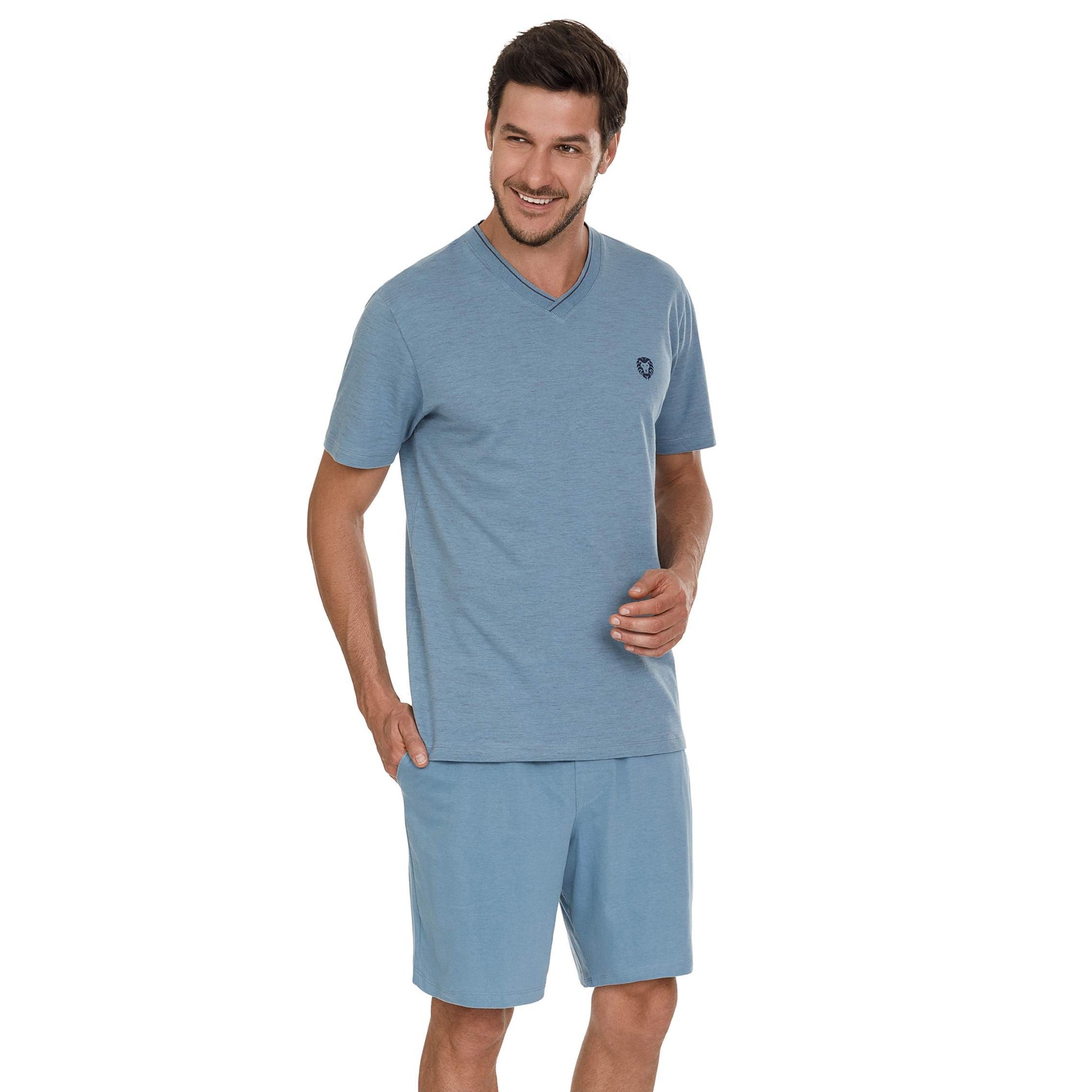A bermuda, por sua vez, vem em um tom sólido que contrasta harmoniosamente com a camiseta rajada. Sua modelagem solta garante liberdade de movimentos enquanto você dorme ou relaxa. E o melhor: ela possui bolsos laterais para guardar pequenos objetos pessoais - um detalhe prático que faz toda a diferença.